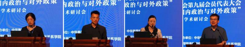 在小组总结汇报环节,来自八个研讨分会场的代表:南京大学国际关系学院王婉潞、国务院发展研究中心世界发展研究所王萍、中国社会科学院美国研究所马伟、扬州大学韦佳、中国社会科学院美国研究所石培培、南京大学国际关系学院周文星、中国社会科学院美国研究所杨水清、中国现代国际关系研究院美国研究所张文宗,分别汇报了各个分会场的研讨情况。