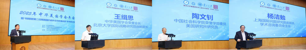 2025年9月26日-28日,由中华美国学会主办、中国社会科学院美国研究所和复旦大学美国研究中心联合承办的2025年中华美国学会年会暨“特朗普第二任期美国内政外交与中美关系”学术研讨会在复旦大学成功举办。中国社会科学院党组成员、秘书长赵志敏,复旦大学党委常委、副校长陈志敏出席开幕式并致辞。来自中国社会科学院、复旦大学、北京大学、清华大学、中国人民大学、南京大学等国内高校及智库的近300位师生参加本次年会。